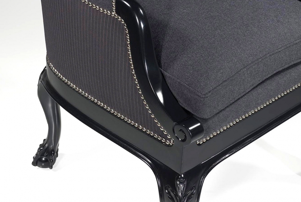Ghế bành Arabella được làm bằng gỗ Anh đào với lớp hoàn thiện màu Đen Cổ. Nó có bàn chân và chân được chạm khắc bằng tay tuyệt vời; và nó được bọc hoàn toàn với đường ống và đinh tán.